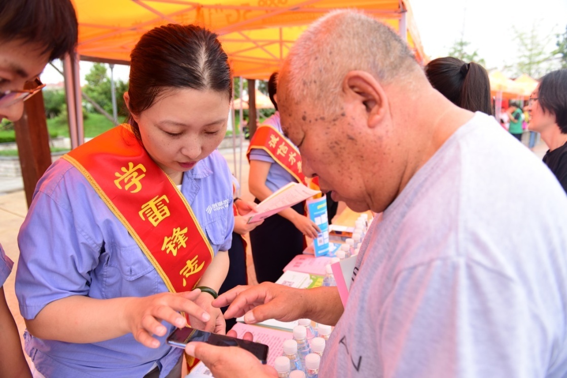 在活動現(xiàn)場,水務(wù)集團的青年志愿者們向市民宣講用水知識、水價政策,解答市民疑難問題。“能不能用手機預(yù)存水費?”“家中的水表怎么讀數(shù)?”“十八嶺礦泉水是哪里生產(chǎn)的?”“現(xiàn)在的水價是多少,每戶每月限定用水嗎?”針對市民的各種疑惑,水務(wù)集團志愿者們熱情細致地一一解答,解讀了水費收取標準及惠民政策,現(xiàn)場演示了如何正確讀取水表,針對部分老年人不會使用智能手機繳費的情況,黨員志愿者現(xiàn)場演示了微信繳費、支付寶繳費的操作流程。